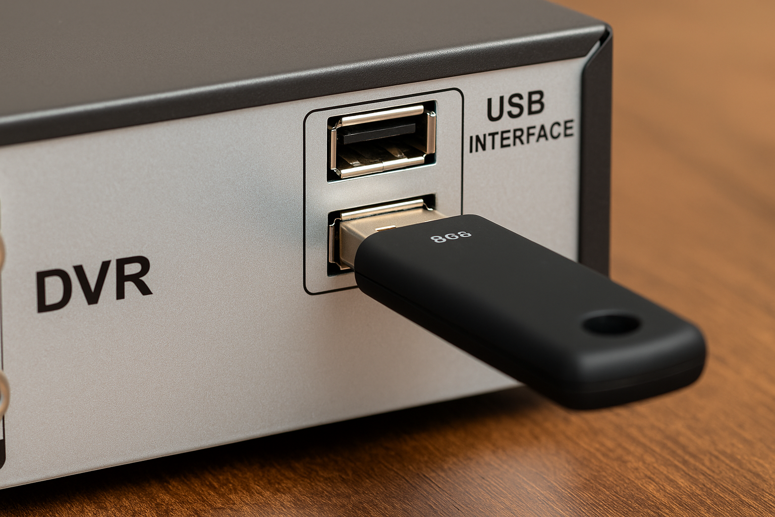 در دستگاههای DVR آنالوگ که بهطور سنتی با دوربینهای دارای کابل کواکسیال کار میکنند، USB بیشتر بهعنوان رابطی برای بکاپگیری از تصاویر ضبطشده استفاده میشود. در این سیستمها تصاویر پس از تبدیل به داده دیجیتال درون خود دستگاه، روی هارد داخلی ذخیره میشوند و کاربر میتواند بخشی از این اطلاعات را با اتصال فلشمموری یا هارد اکسترنال از طریق پورت USB، استخراج کند. در بیشتر DVRهای قدیمی، سرعت این انتقال پایین بوده و محدود به استاندارد USB2.0 است. همچنین رابط USB در DVRها اغلب نقش ارتباطی یکطرفه دارد؛ یعنی یا اطلاعات را دریافت میکند یا ارسال مینماید، نه هر دو بهصورت همزمان و چندمنظوره.