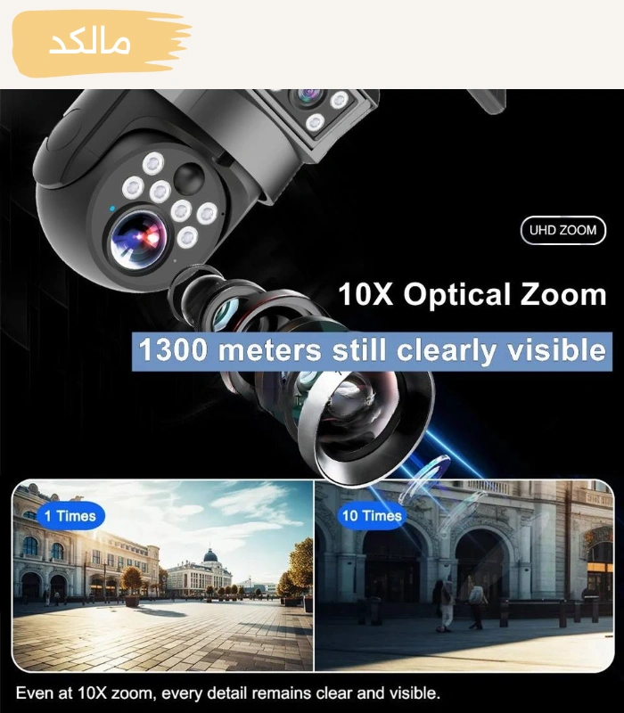 بله، UBOX-T500 از زوم اپتیکال واقعی 10X بهره می‌برد؛ یعنی بزرگ‌نمایی از طریق تغییر موقعیت لنز انجام می‌شود و وضوح تصویر در تمام حالت‌ها حفظ می‌گردد. این ویژگی برای ضبط جزئیات از فواصل طولانی بسیار کاربردی است.