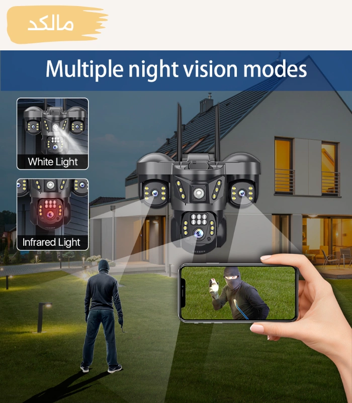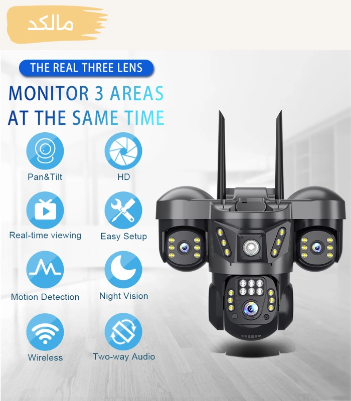 355 درجه چرخش افقی و 90 درجه عمودی ,آژیر قوی ,ارسال هشدار روی موبایل ,پخش آژیر ,پشتیبانی از تمامی سیم کارت ها ,تشخیص حرکت ,تعقیب سوژه ,دارای 3 لنز با فیلمبرداری همزمان ,دید در شب 45 الی 50 متری ,دید در شب رنگی |